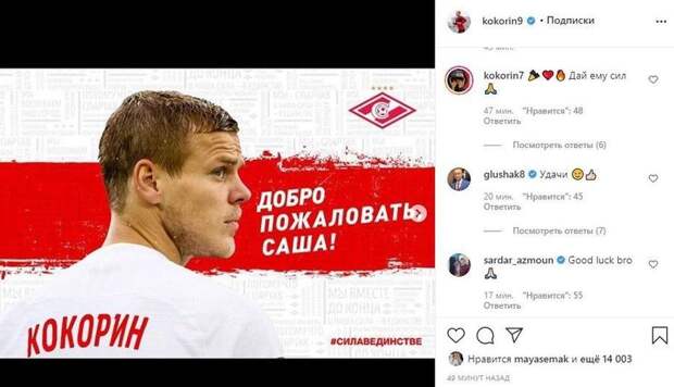 Sport.ru/ Футбол. Новичок "Спартака" Александр Кокорин обновил свою страницу в Instagram. Сегодня, 2 августа, форвард стал игроком красно-белых.